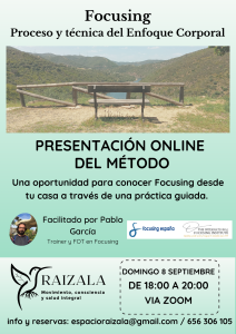 Ven a la presentación online gratuita del domingo 8 de septiembre, de 18:00 a 20:00, para conocer el Focusing a través de una práctica guiada.