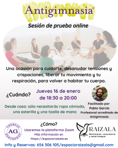 Aprovecha esta oportunidad para conocer la Antigimnasia, de manera gratuita, a través de una sesión completa desde tu casa.